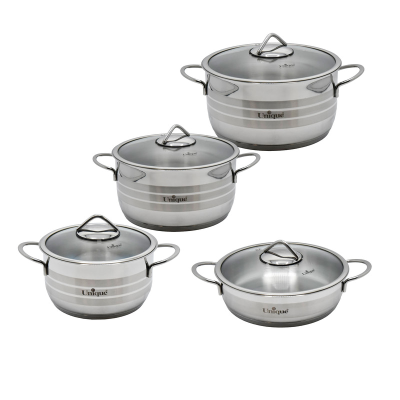 سرویس قابلمه و تابه استیل 8 پارچه یونیک مدل 9980