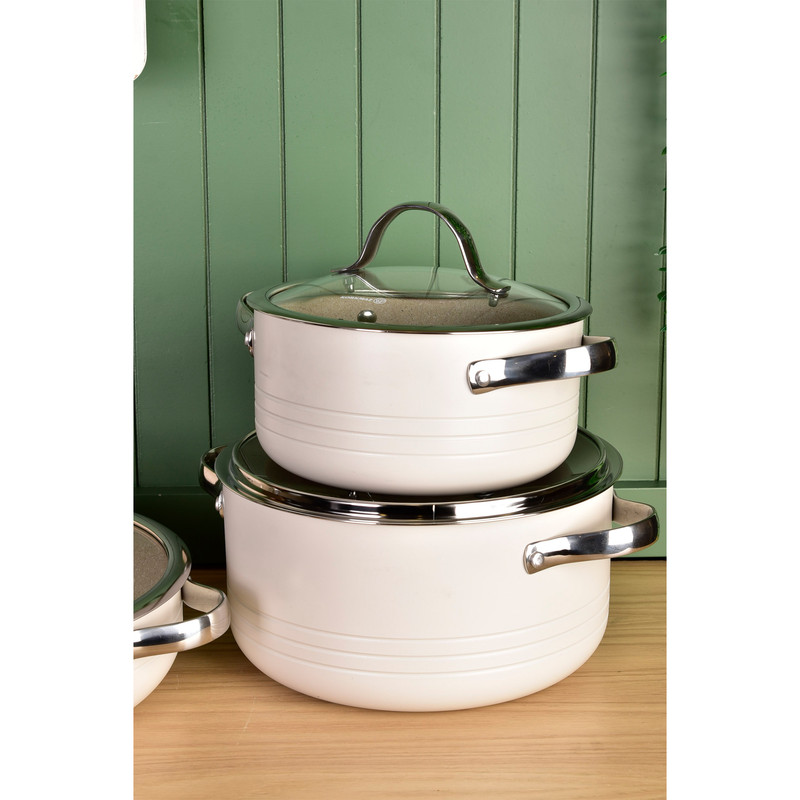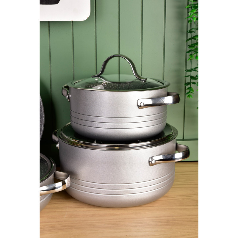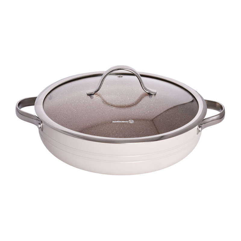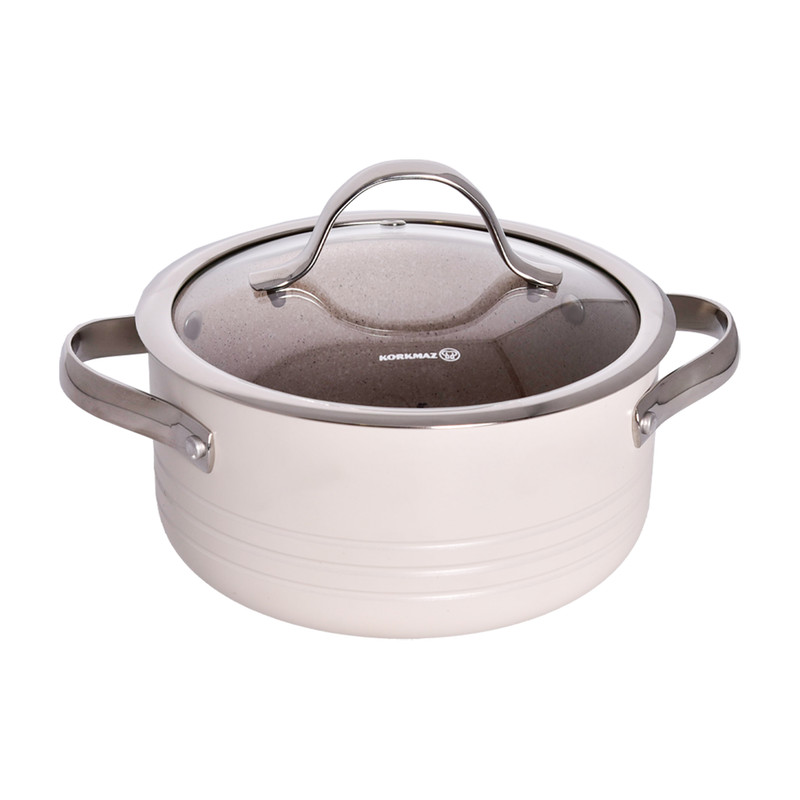 این محصول گرانیتی کرکماز دارای اقلامی با سایز های زیر می باشد: 2 عدد قابلمه با سایز های 18*9 و 22*11 سانتی متر و همچنین با ظرفیت های 2 و 3.8 لیتر 1 عدد قابلمه کوتاه 26*75 سانتی متر با ظرفیت 3.5 لیتر 1 عدد تابه دسته بلند با سایز 26*4.5 و ظرفیت 2 لیتر سرویس قابلمه 2619 کرکماز از جنس آلومینیوم با روکش گرانیت ساخته شده که بسیار با دوام، نچسب و ضد خش بوده و درب های این سرویس از شیشه مقاوم و ضد خش و با کیفیت خیلی بالا و مداوم می باشد که دارای منفذ خروج بخار است.