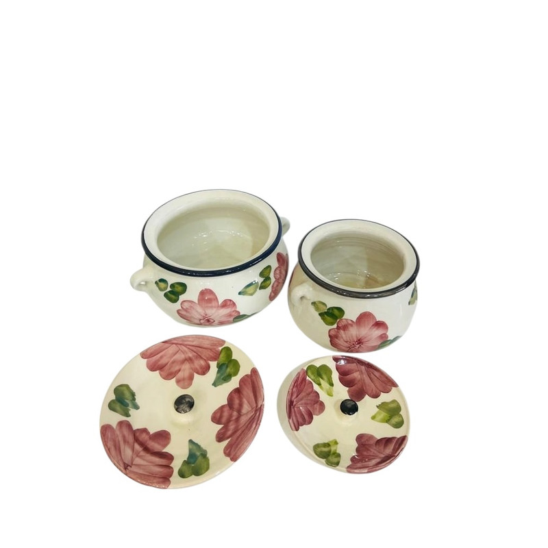 این قابلمه های سرامیکی طرح گلهای زیبا مناسب پخت پز و سرو غذا در میهمانی میباشند .کاربری این کالا هم به عنوان قابلامه می باشد ( قابل استفاده در فر ، مایکروفر ، و روی اجاق گاز با شعله پخش کن ) و هم به عنوان ظرف سرو سوپ می باشد. این کالا دارای لعاب کاملا بهداشتی می باشد.