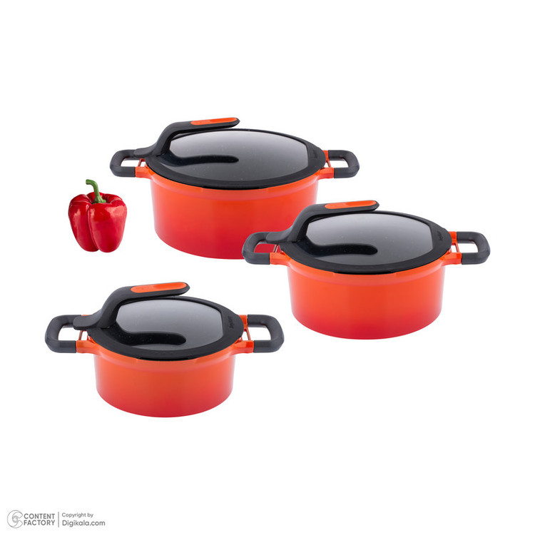 وزن ظروف: یک عدد قابلمه سایز 28 به وزن 2385 گرم یک عدد قابلمه سایز 24 به وزن 1790 گرم یک عدد قابلمه سایز 20 به وزن 1365 گرم یک عدد تابه دو دسته سایز 28 به وزن 2195 گرم یک عدد تابه تک دسته سایز 24 به وزن 1035 گرم