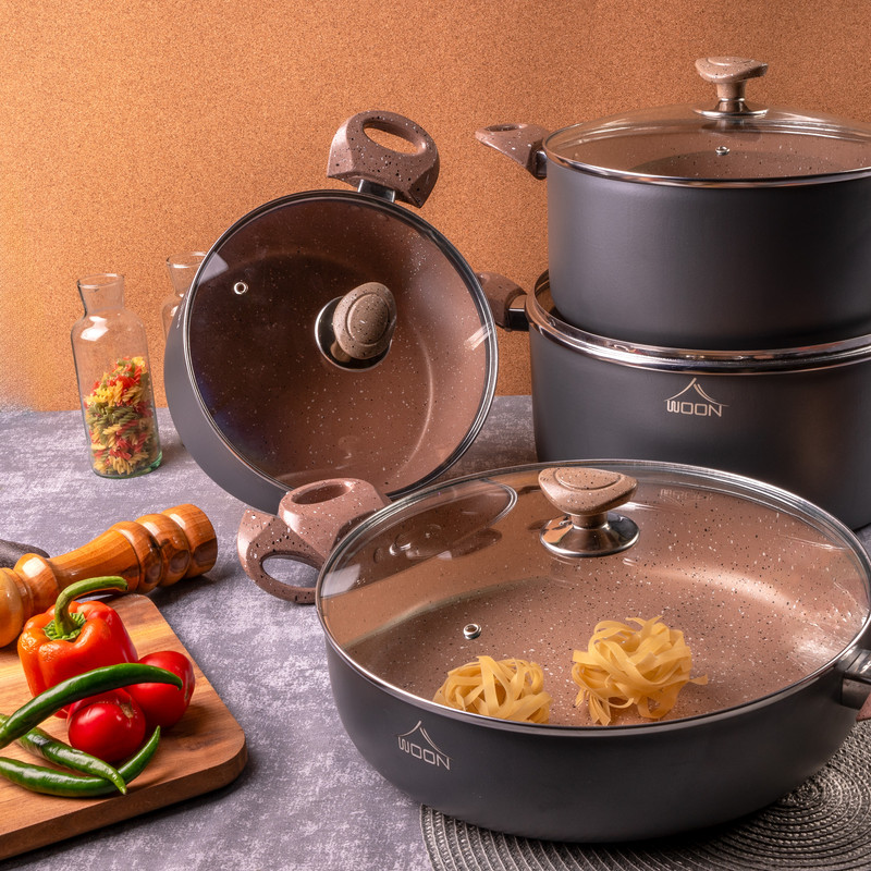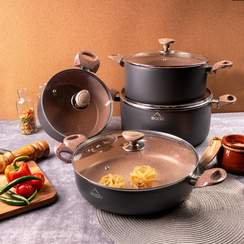 ظروف پخت پز وون با پوشش گرانیت دکو ایتالیا که هیچگونه مواد مضری مانند کادمیوم و سرب و pfoe ندارد از سالم ترین ظروف پخت و پز در ایران می باشد.
