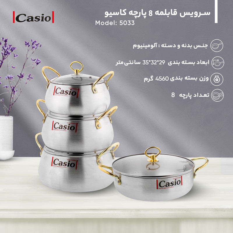 10 پارچه شامل 5 عدد قابلمه با درب به اندازه های : سایز 1 : قطر دهانه 16.5 سانتی متر ، ارتفاع بدون درب 10 سانتی متر ، بزرگترین قطر 19 سانتی متر ، حدودا 2 نفره سایز 2 : قطر دهانه 18.5 سانتی متر ، ارتفاع بدون درب 11 سانتی متر ، بزرگترین قطر 22 سانتی متر ، حدودا 3 نفره سایز 1 : قطر دهانه 21 سانتی متر ، ارتفاع بدون درب 11.5 سانتی متر ، بزرگترین قطر 23 سانتی متر ، حدودا 4 نفره سایز 1 : قطر دهانه 23 سانتی متر ، ارتفاع بدون درب 12.5 سانتی متر ، بزرگترین قطر 26 سانتی متر ، حدودا 6 نفره سایز 1 : قطر دهانه 25 سانتی متر ، ارتفاع بدون درب 13.5 سانتی متر ، بزرگترین قطر 28 سانتی متر ، حدودا 8 نفره