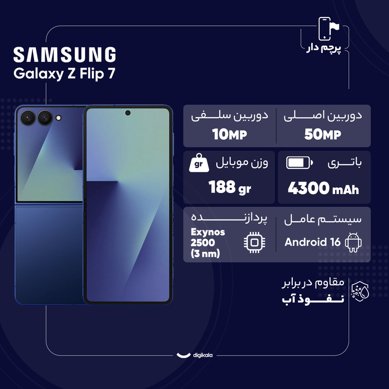 گوشی Samsung Galaxy Z Flip 7 نسل جدید گوشیهای تاشوی محبوب سامسونگ است که در سال ۲۰۲۵ با طراحی زیباتر، سختافزار قویتر و امکانات کاربردیتر معرفی شد. این گوشی در حالت باز، نمایشگری ۶.۹ اینچی Dynamic AMOLED 2X با نرخ نوسازی ۱۲۰ هرتز و روشنایی چشمگیر ۲۶۰۰ نیت ارائه میدهد که تجربهای روان، روشن و خیرهکننده را فراهم میکند. در حالت بسته نیز نمایشگر ثانویهی ۴.۱ اینچی Super AMOLED با قابلیت تعامل کامل، پاسخ سریع به پیامها، کنترل موسیقی و حتی گرفتن سلفی با دوربین اصلی را امکانپذیر میسازد.