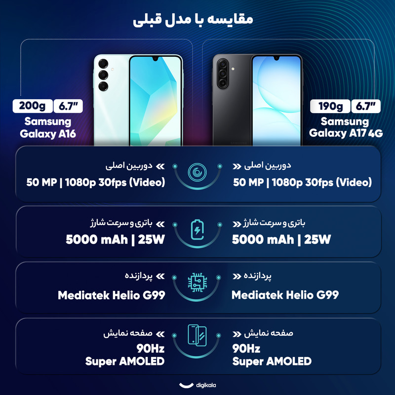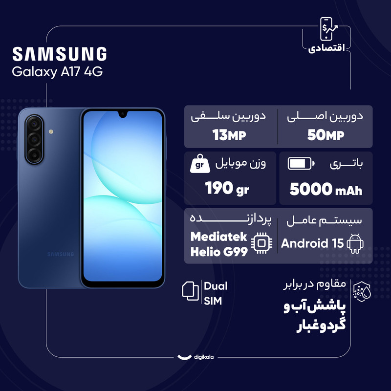 گوشی موبایل سامسونگ مدل Galaxy A17 4G دو سیم کارت ظرفیت 128 گیگابایت و رم 4 گیگابایت - ویتنام - به همراه شارژر 25 وات سامسونگ