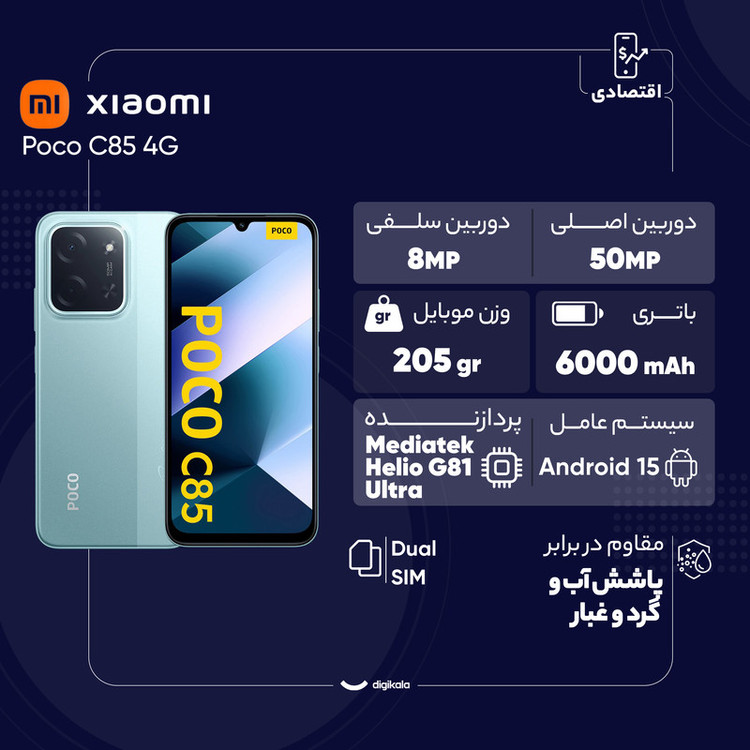 گوشی موبایل شیائومی مدل Poco C85 4G دو سیم کارت ظرفیت 256 گیگابایت و رم 8 گیگابایت