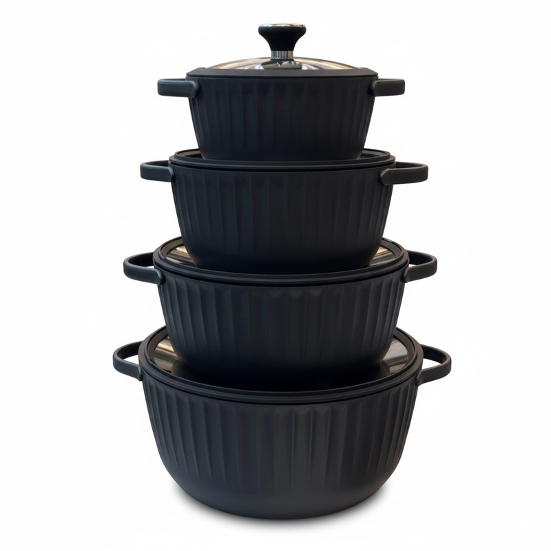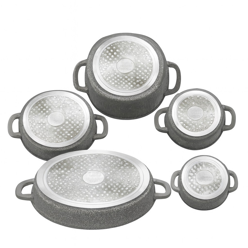 سرویس قابلمه ۱۰ پارچه زیو (ZIO) مدل ZCS-8700 یک انتخاب مدرن و کارآمد برای آشپزخانهی شماست که ترکیبی از زیبایی، دوام و پخت و پز سالم را به ارمغان میآورد. بدنه این سرویس از آلومینیوم دایکاست (ریختهگری شده) با خلوص و ضخامت بالا ساخته شده است که انتقال و حفظ پایدار حرارت را تضمین میکند. پوشش داخلی از نوع نانو گرانیت سنگی (Marble Coating) چند لایه و با کیفیت مرغوب است. این پوشش کاملاً نچسب، مقاوم در برابر حرارت و سایش بالا بوده و عاری از مواد مضر PFOA است؛ در نتیجه، امکان پخت و پز سالم و رژیمی با کمترین میزان روغن را فراهم میکند. مدل ZCS-8700 دارای کفی ضخیم و یکپارچه مجهز به تکنولوژی Induction Bottom است که باعث میشود حرارت به صورت فوقالعاده سریع و یکنواخت در سطح ظرف پخش شود و آن را قابل استفاده بر روی انواع اجاق گاز (شامل گازی، برقی و به ویژه القایی) میسازد. این مدل از دستههای ارگونومیک و نسوز استفاده میکند که حتی در طول زمان طولانی پخت و پز نیز خنک میمانند. دربهای این سرویس از جنس پیرکس مقاوم در برابر شوک حرارتی ساخته شده و مجهز به دریچه خروج بخار هستند تا از سر رفتن غذا جلوگیری شود. این مجموعه شامل ۵ عدد قابلمه در ابعاد پرکاربرد و ۵ عدد درب است که نیاز خانوادههای کوچک تا متوسط را به طور کامل پوشش میدهد (شامل قابلمههای بلند ۲۰، ۲۴، ۲۸ سانتیمتری، یک تابه دو دسته ۲۸ سانتیمتری و یک قابلمه کوچک ۱۶ یا ۱۸ سانتیمتری). سرویس قابلمه ZIO 8700 یک سرمایهگذاری بلند مدت در کیفیت آشپزی شماست و با دوام بالا، نظافت آسان و قابلیت استفاده بر روی انواع حرارت، یک همراه حرفهای در آشپزخانه خواهد بود.