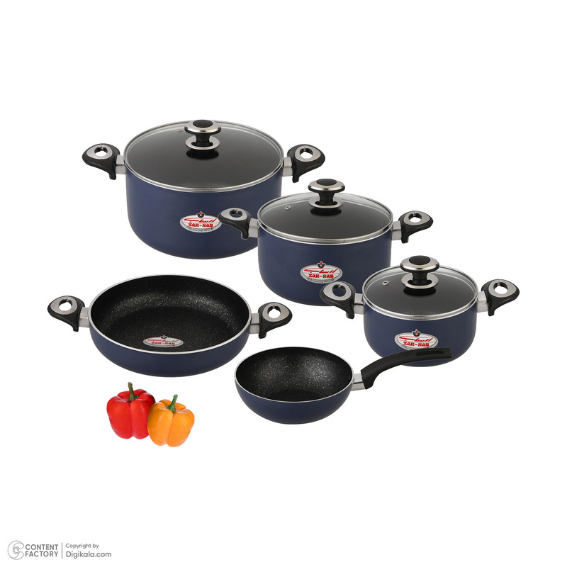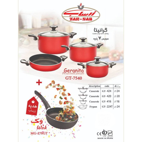 سرویس پخت و پز 7 پارچه زرساب مدل گرانیتا به همراه تابه وک هدیه
