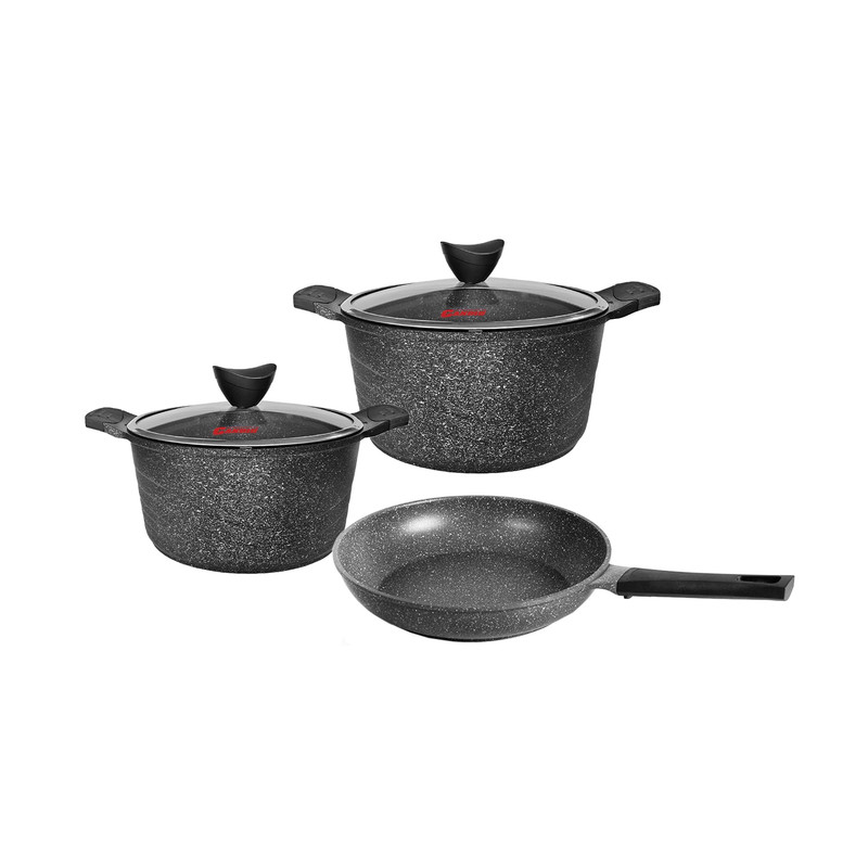 سرویس پختوپز ۵ پارچه کاندید مدل اوشن، مجموعهای کاربردی و باکیفیت ساخت ایران است که با بهرهگیری از تکنولوژی دایکست (چدن ریختگی) تولید شده است. ساختار بدنه این ظروف از آلومینیوم فشرده با ضخامت بالا ساخته شده که موجب استحکام زیاد و توزیع یکنواخت حرارت میگردد. جنس روکش داخلی از گرانیت مرغوب و نچسب است که امکان آشپزی با کمترین میزان روغن و شستوشوی آسان را فراهم میکند. این سرویس شامل دو قابلمه در سایزهای ۲۰ و ۲۴ سانتیمتر و یک تابه تکدسته کاربردی سایز ۲۴ است. جنس در ظروف از پیرکس مقاوم در برابر حرارت بوده که نظارت بر فرآیند پخت را تسهیل میکند. نوع دسته در این مدل بهصورت متصل و از ساختار بدنه بوده که با روکش سیلیکون جهت محافظت در برابر گرما پوشانده شده است. این مجموعه با اجاق گاز و اجاق برقی کاملاً سازگار با بوده و انتخابی بادوام برای مصارف روزمره در آشپزخانه محسوب میشود.