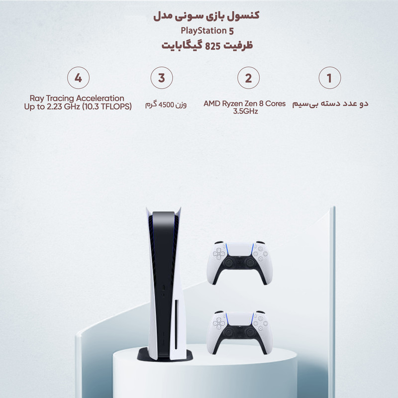 مجموعه کنسولهای بازی PlayStation حدود سه دهه است که توسط شرکت سونی تولید شده و روانهی بازار میشوند. کنسول بازی PlayStation 5 به عنوان نسل جدید این کنسولها با مشخصات فنی چشمگیر روانهی بازار شده و به سرعت به یکی از پرطرفدارترین کنسولهای بازی در سراسر دنیا تبدیل شده است. این کنسول با حافظهی داخلی پرسرعت 825 گیگابایتی خود اجازه داده است تا توسعهدهندگان بازیهای ویدیویی بتوانند محتوای بسیار با کیفیتتر و با ویژگیهای جدیدتری را در دسترس دارندگان این کنسول قرار دهند. همچنین، قدرت بالای پردازندهی مرکزی و گرافیکی این کنسول شرایط را برای اجرای بازیهای ویدیویی با وضوح تصویر حداکثری 8K، نرخ تازهسازی تصویر 120 هرتز و با تنظیمات گرافیکی بسیار بالا مهیا کرده است. این کنسول PlayStation 5 با بهرهمندی از درایو Ultra HD Blu-ray میتواند از بازیهای ویدیویی فیزیکی هم پشتیبانی کند. همچنین، در این کنسول یک اسلات خالی حافظهی پر سرعت تعبیه شده تا در صورت نیاز بتوان میزان حافظهی داخلی آن را افزایش داد. لازم به ذکر است که این کنسول به همراه یک دسته اضافی در اختیار خریداران قرار خواهد گرفت.
