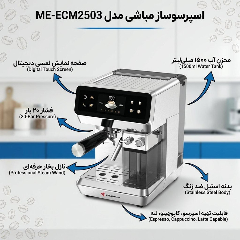 اسپرسو ساز ۱۵۰۰ میلی‌لیتر مباشی مدل ME-ECM2503