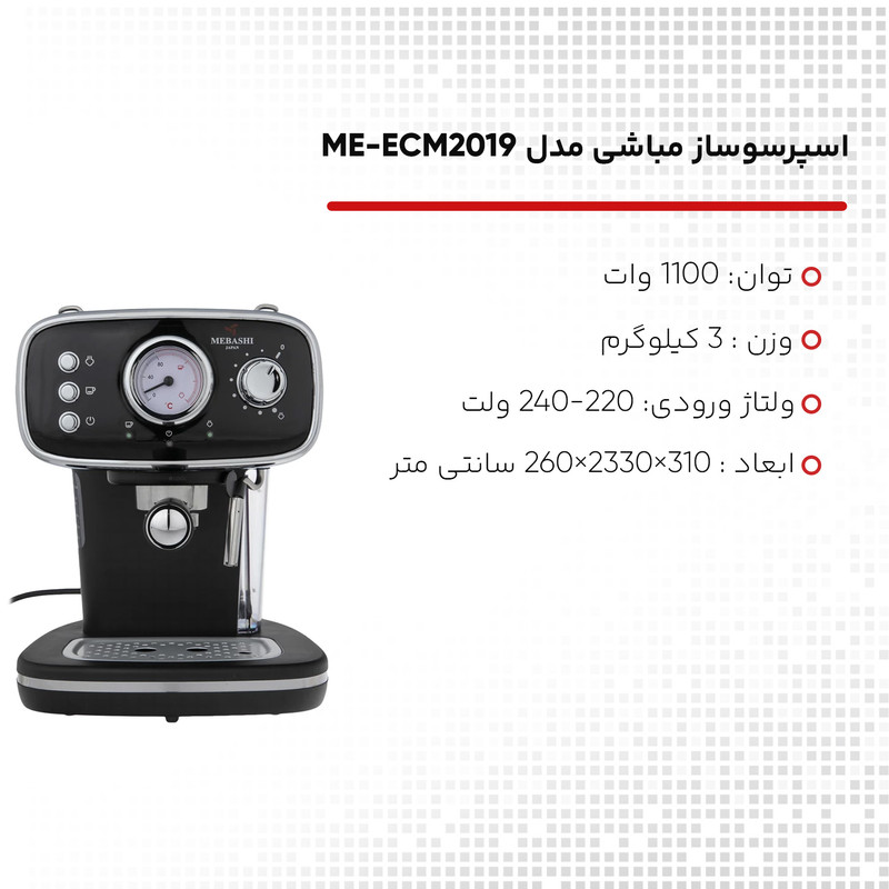 اگر به نوشیدن اسپرسو علاقه دارید، باید به فکر تهیه اسپرسوساز باشید. اسپرسو ساز مباشی مدل ME-ECM2019 یکی از گزینههایتان است. این مدل علاوه بر اسپرسو به شما امکان تهیه کاپوچینو را هم میدهد و این ویژگی باعث شده تا کارایی این مدل افزایش یابد. یکی از قابلیتهای این اسپرسوساز خاموشی خودکار پس از 29 دقیقه است. این قابلیت باعث شده تا عمر دستگاهتان افزایش یابد. ظرفیتی که برای این مدل در نظر گرفته شده 1.2 لیتر است. این میزان برای مصارف خانگی کافی است. توان مصرفی این مدل توسط مباشی، 1100 وات اعلام شده است. فشار بخار این اسپرسو ساز حداکثر 20 بار است. یکی از ویژگیهای این محصول قابلیت تولید کفشیر است. اسپرسو و کاپچینو نوشیدنیهای پایه بسیاری از نوشیدنیهای دیگر است. با تهیه این دستگاه میتوانید به آسانی اسپرسو و کاپوچینو تهیه کنید. این مدل به دماسنج عقربهای مجهز شده و طول سیم اسپرسوساز مباشی 1 متر است. این میزان برای زمانی که از پریز فاصله دارید مناسب است.. اگر قصد تهیه اسپرسوساز با کیفیت دارید، این مدل یکی از انتخابهایتان است.