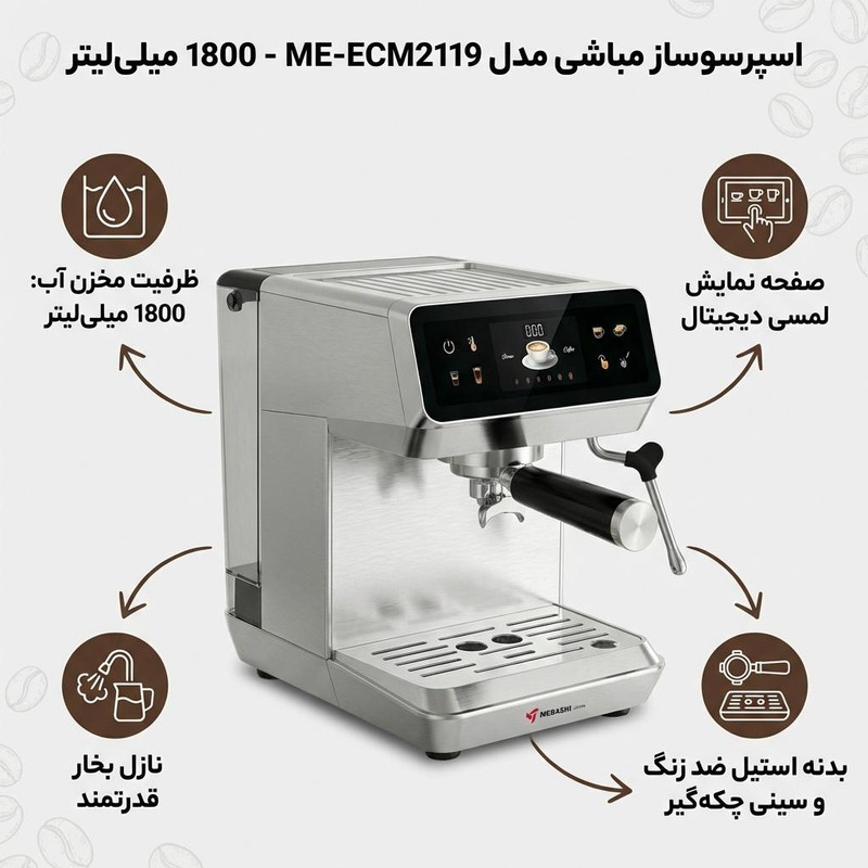 اسپرسو ساز 1800 میلی‌لیتر مباشی مدل ME-ECM2119