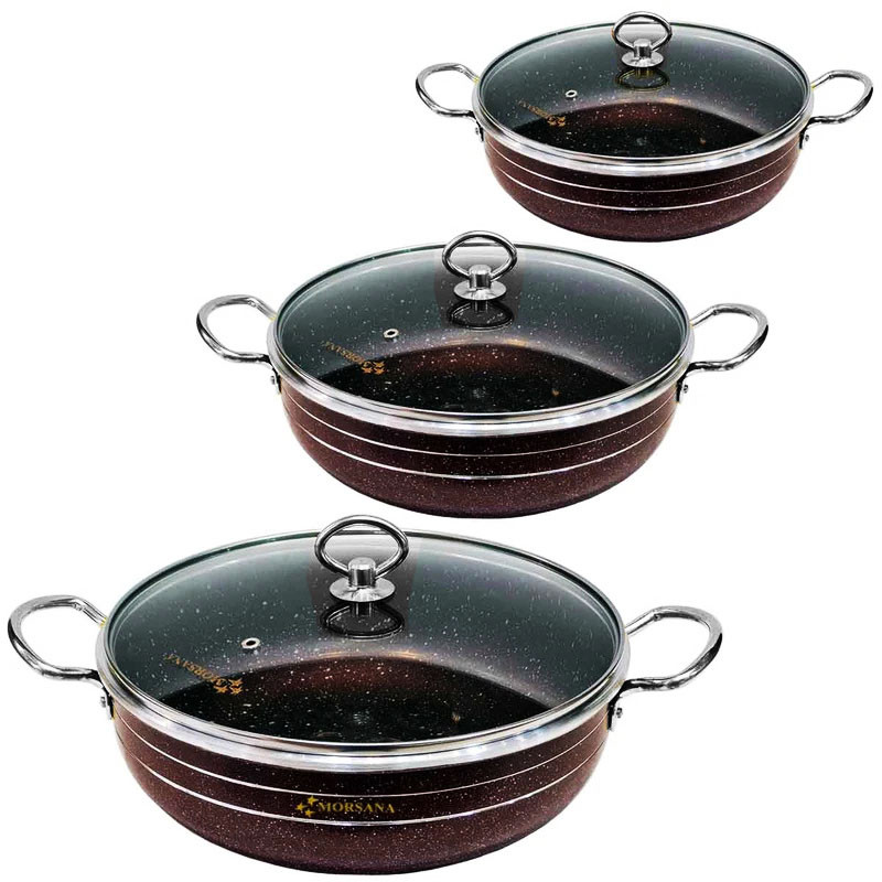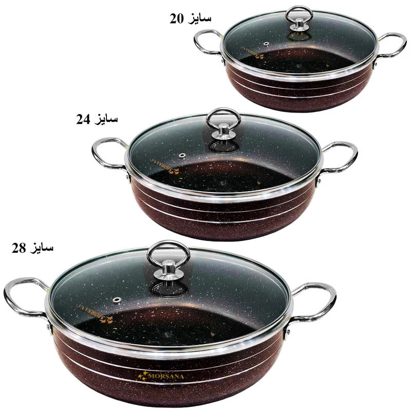 سایزهای استاندارد و پرکاربرد 28 سانتی متر، 24 سانتی متر و 20 سانتی متر تابه ها، به همراه 3 عدد درب پیرکس، در کنار دوام و عمر طولانی آن، این محصول را به یکی از پرکاربردترین محصولات در آشپزخانه تبدیل کرده است.