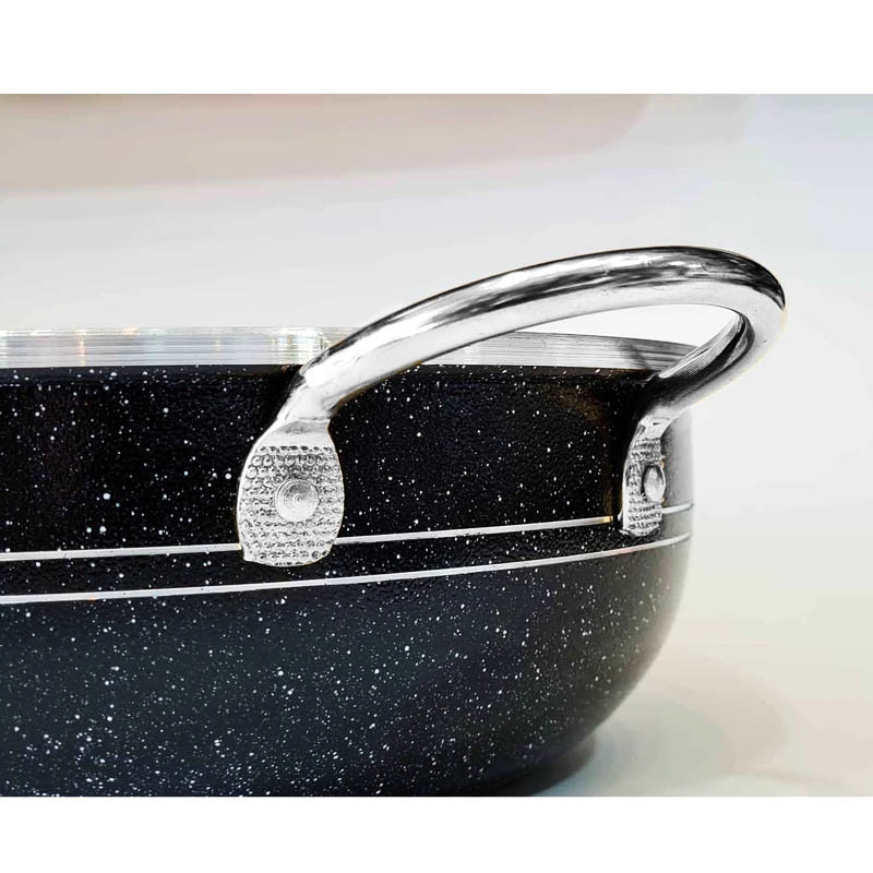 طراحی دسته ها از جنس فلز، حس اطمینان و راحتی را به مصرف کننده می دهد. این سرویس ماهیتابه در سایز ها و رنگبندی مختلف میباشد که به راحتی با هر آشپزخانه ای ست شده و آشپزی را برای شما آسان نموده است. همچنین شستشوی آن آسان است و با یک اسفنج نرم نیز به راحتی تمیز میشود.