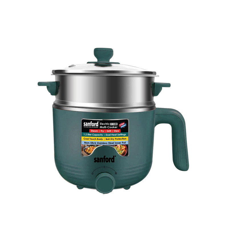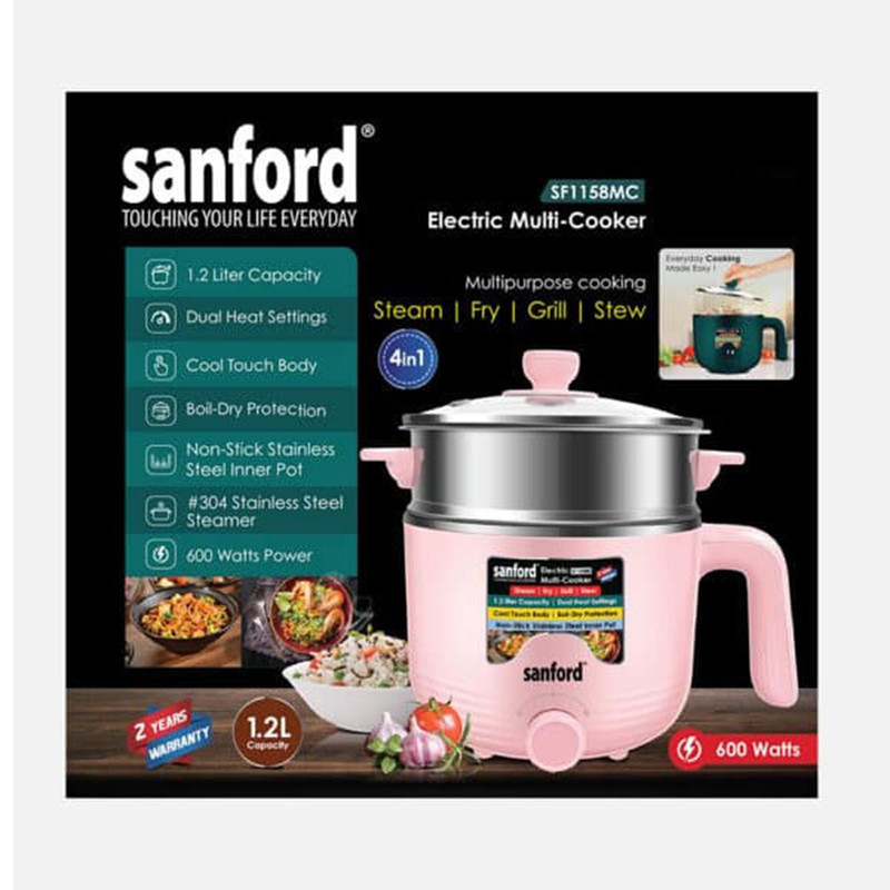 دستگاه مولتی کوکر مدل SF1158MC دارای 4 عملکرد مختلف یعنی قابلمه پلو پز ، سرخ کن، بخارپز و گریل است. این عملکرد 4گانه شما را قادر می سازد فضای آشپزخانه را آزاد کنید و انواع قابل توجهی از غذاها با مجموعه متنوعی از دستور پخت را بپزید. این دستگاه همچنین دارای دسته محکم و بدنه عایق و خنک در هنگام استفاده است. برای ایمنی و راحتی، درب شیشه ای از شیشه سفت ساخته شده است که حرارت را در قابلمه حفظ می کند و به شما امکان می دهد پیشرفت پخت و پز خود را مشاهده کنید. قابلمه داخلی با ظرفیت 1/2لیتر دارای روکش نچسب برای جلوگیری از چسبیدن غذا به سطح قابلمه در طول فرایند پخت است که امکان سرو آسان و تمیز کردن سریع دستگاه را فراهم می کند.همچنین وجود دو سطح دمایی امکان تنظیم دما برای تنظیم زمان پخت را فراهم میکند. طراحی جمع و جور نگهداری آن را آسان کرده و آن را برای آشپزخانه های کوچکتر ایده آل می کند.