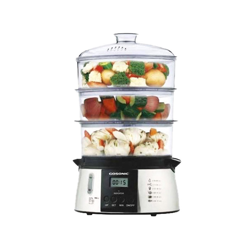 بخارپز گوسونیک مدل «GFS619» دستگاهی مناسب برای افرادی است که می خواهند غذای سالم و بدون روغن بخورند. این دستگاه برای تهیه مخلفات کنار غذاهای گوناگون هم کاربرد دارد. تهیه هویج پخته، سبزیجات مختلف، سیب زمینی پخته و ... با این محصول بسیار آسان است. توان بالای دستگاه آب را سریع به بخار تبدیل کرده و بخار داغ از میان طبقات و مواد غذایی مختلف عبور کرده و باعث پخت آنها می شود. وزن دستگاه کم است و ظرفیت بالایی دارد، همچنین در حین فعالیت و در میانه پخت هم می توان مقدار آب باقی مانده در دستگاه را از طریق نشانگر میزان آب کنترل کرد و در صورت نیاز به دستگاه آب اضافه کرد. پنل تنظیم دستگاه شامل دکمه ها و نمایشگر در جلوی آن قرار دارد تا از طریق آن تنظیمات مربوط به مواد غذایی انتخاب و تعیین شود. طبقات را میتوان روی هم قرار داد و از ظرفیت کامل دستگاه بهره برد و در صورتی که مواد غذایی کم هستند میتوان طبقات اضافی را از روی دستگاه برداشت . گوسونیک برندی ترکیه ای است که سالها در زمینه تولید و عرضه لوازم خانگی فعالیت داشته و هدف آن تولید محصولات باکیفیت خانگی است