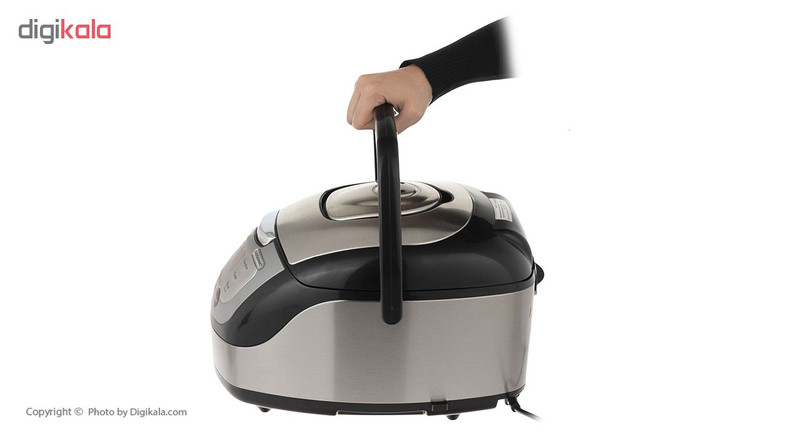 پوشش داخلی درب پلوپز از جنس آلومینیوم و با طراحی ضد سرریز و دارای دریچه خروج بخار اضافی می باشد. برای باز کردن درب نیز تنها کافیست دکمه واقع روی بدنه را بفشارید تا درب باز شود. قابلمه این دستگاه با ظرفیت 1.8 لیتر و دارای دو لایه نچسب می باشد. دو عدد ملاقه و قاشق پلاستیکی همراه با دستگاه ارائه شده است که با استفاده از آنها آسیبی به پوشش داخلی دیگ وارد نمی شود. با اتصال قطعه مخصوص بر روی بدنه می توانید قاشق و ملاقه را در این قسمت قرار دهید تا هنگام آشپزی در دسترس شما باشند و با استفاده از پیمانه مدرج نیز می توان میزان مواد غذایی را به صورت دقیق اندازه گیری کرد. به کمک سبد بخارپز می توانید غذاها را بصورت کاملا سالم و مغذی بخارپز نمایید.