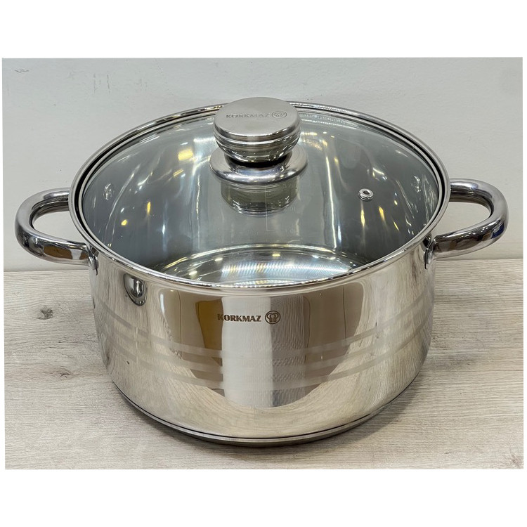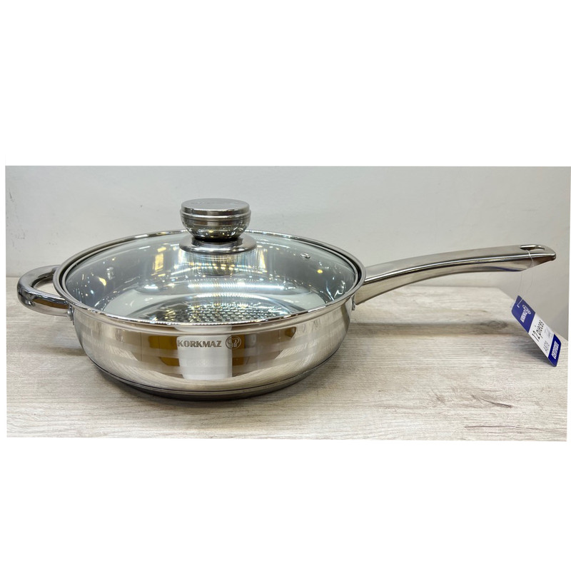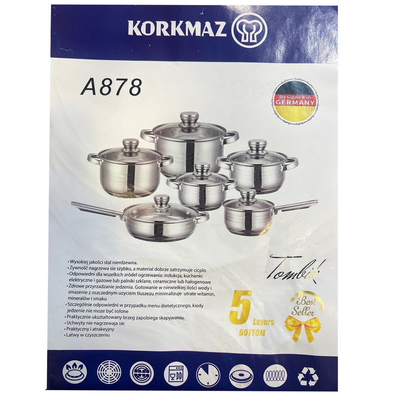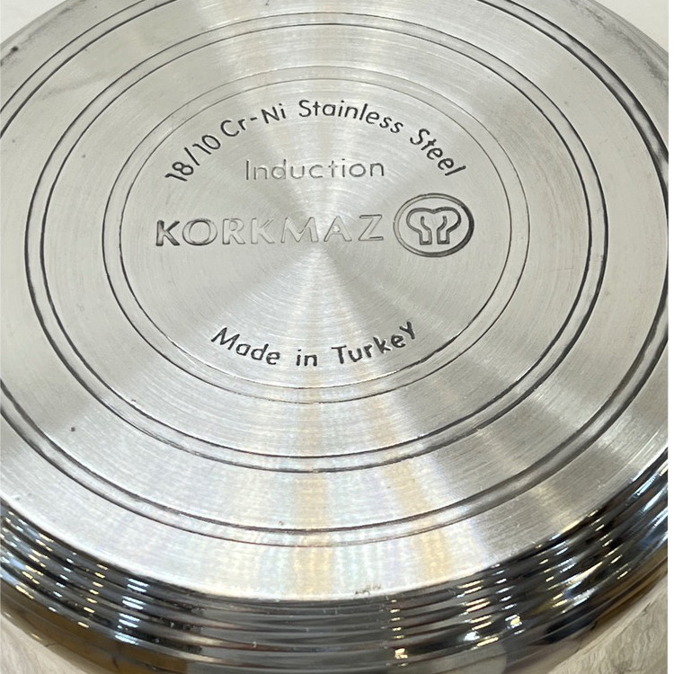 شرکت کرکماز یکی از برترین برند های لوازم خانگی در ترکیه می باشد این تابه از بهترین نوع استیل 18.10 اعلا ضد زنگ ساخته شده این محصول دارای کف چدنی اینداکشن نیز می باشد که سه لایه بوده و باعث میشود حرارات را در خود نگه دارد باعث مقاوم بودن و مصرف کم انرزی نیز میشود این محصول دارای دستگیره از جنس استیل نیز می باشد که در برابر حرارت مقاوم می باشد از دیگر مزیتهای این سرویس دارای درب پیرکس می باشد که کاملا نشکن می باشد داخل این تابه به طوری برجسته طراحی شده است که بدون نیاز به روغن نیز استفاده می شود این سرویس دارای قابلمه به ترتیب سایز 26 سایز 22 سایز 20 و سایز 18 و تابه سایز 26 و شیر جوش سایز 16 می باشد