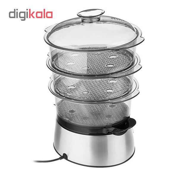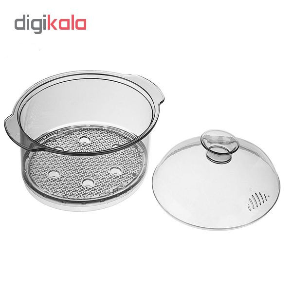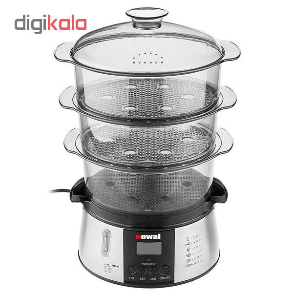 بخارپز «نوال» مدل « NWL-1885» محصولی باکیفیت و کارآمد است. ظرفیت این بخارپز به 10 لیتر میرسد و بدنهی آن از ترکیب استیل و پلاستیک مرغوب ساخته شده است. با وجود سه طبقهی مجزا که روی هم سوار میشوند، میتوانید حجم زیادی از مواد غذایی را در کمترین زمان بخارپز کنید. این سه طبقه روی هم سوار میشوند و روی آنها درِ دستهدار دستگاه قرار میگیرد. برای خروج بخار چند شیار باریک روی درِ بخارپز در نظر گرفته شده است. تنظیمات بخارپز از طریق چند دکمهی فشاری انجام میشود که با صفحهنمایش دیجیتالی همراه شدهاند. علائم راهنمایی که روی بدنهی بخارپز حک شدهاند زمان مناسب برای پخت انواع مواد غذایی را مشخص میکنند. گفتنی است تایمر دستگاه تا حداکثر زمان 2 ساعت قابل تنظیم است. به کمک نوار باریکی روی دستگاه میتوانید از میزان آب موجود در مخزن بخارپز مطلع شوید. برخورداری از ظرف جمعآوری عصارهی مواد غذایی و دستگیرهی مخصوص از دیگر مشخصات این مدل است.