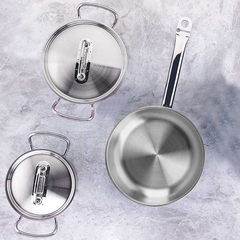 سرویس قابلمه Korkmaz Proline از جنس استیل ضد زنگ 18/10 (کروم-نیکل) بوده که این نوع استیل به دلیل وجود 18 درصد کروم و 10 درصد نیکل، بسیار با کیفیت و محکم خواهد بود. کف قابلمهها و تابه دربدار به صورت سوپر کپسولی و با ضخامت 8 میلیمتر ساخته شده است. سطوح آلومینیومی مخصوص برش خورده روی پایه کپسولی هدایت گرما را بهتر کرده و در نتیجه در زمان و انرژی شما صرفه جویی خواهد شد.