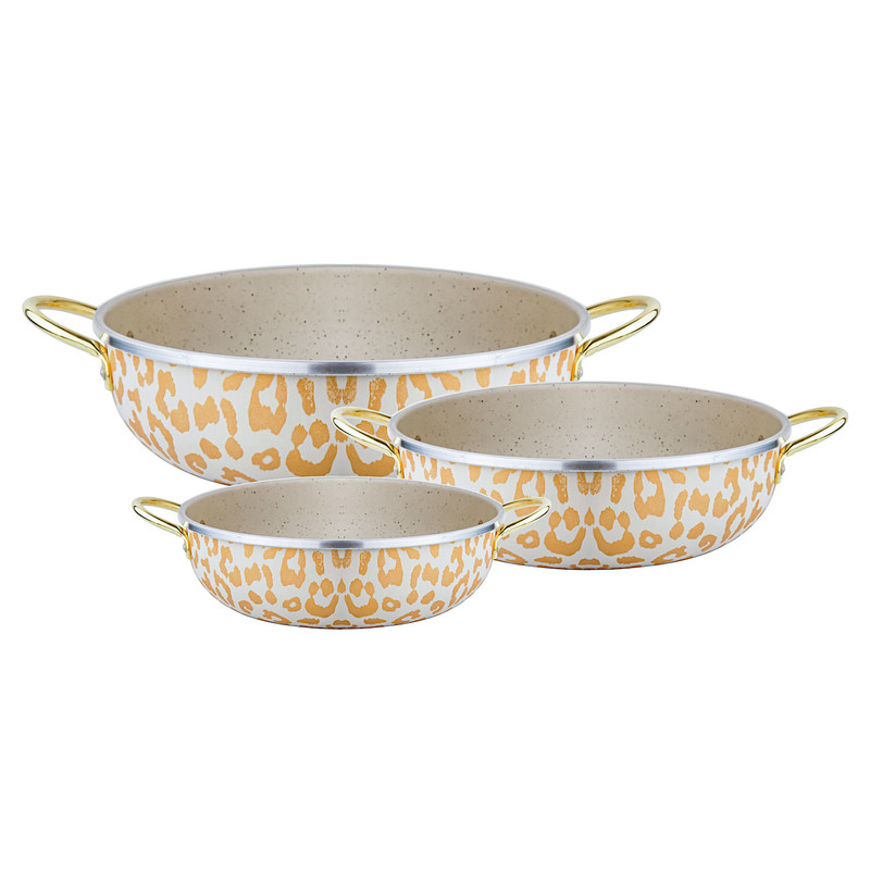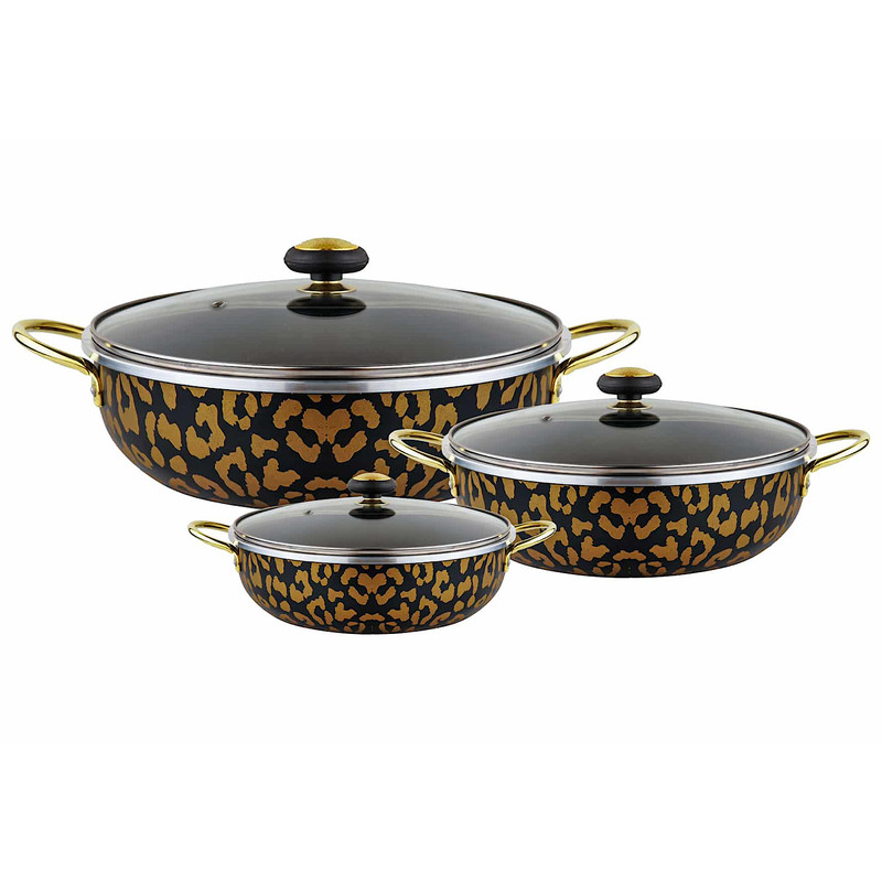 سرویس تابه 6 پارچه پلنگی شامل سه عدد تابه به همراه درب در سایز های 18 و 22 و 28 می باشد و از بهترین و مرغوب ترین مواد اولیه تهیه شده و برای استفاده روزمره بسیار کارآمد می باشد