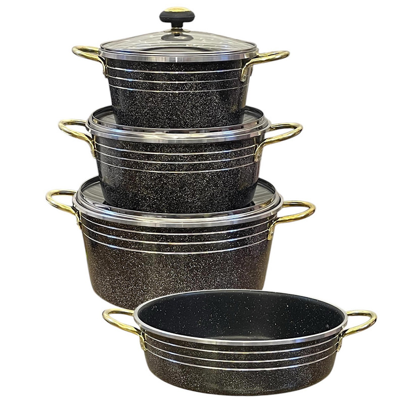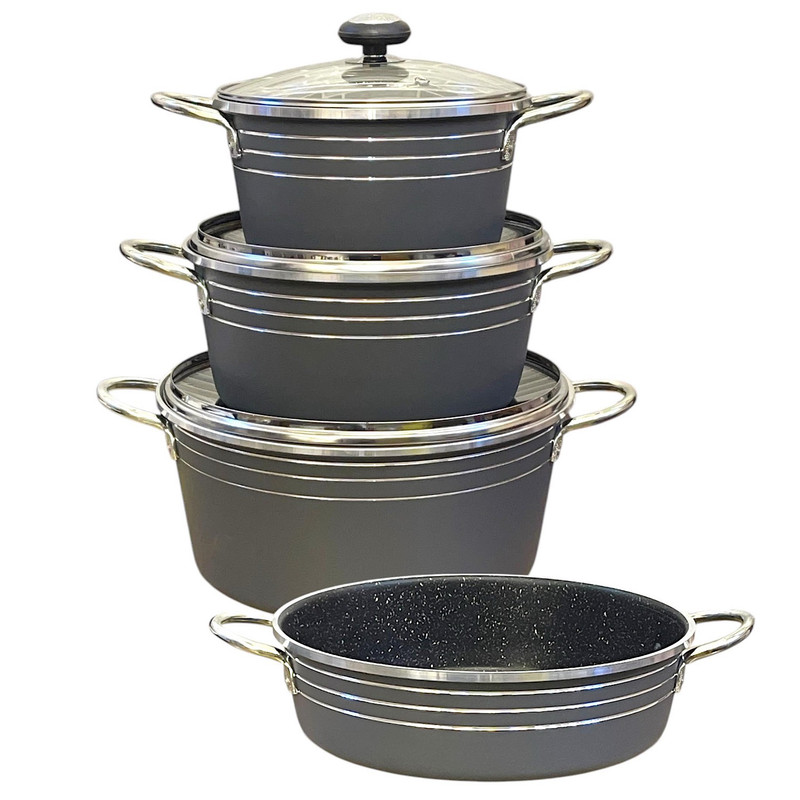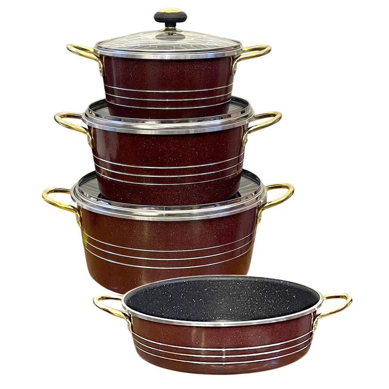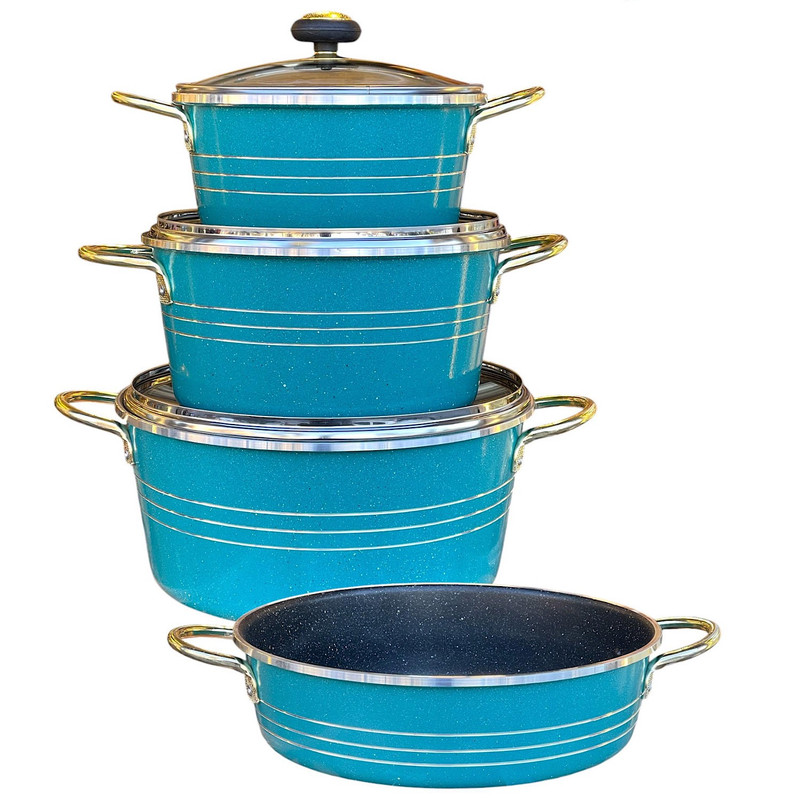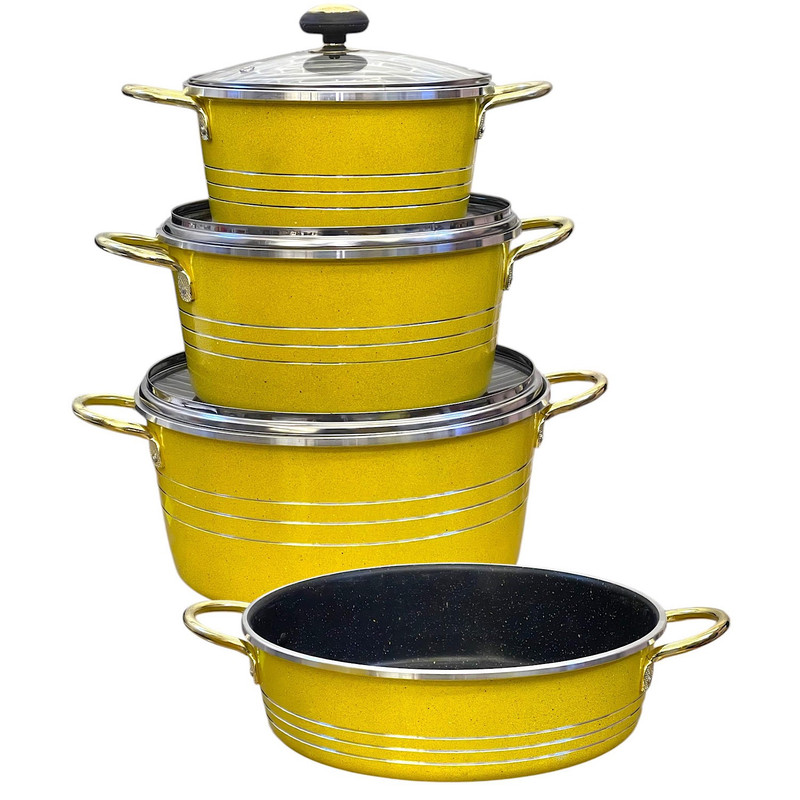 سرویس ۷ پارچه طرح گلدونی سورنا شامل ۳ عدد قابلمه در سایز های ۲۰ و ۲۴ و ۲۸ به همراه درب و ۱ عدد تابه در سایز ۲۸ می باشد که از مرغوب ترین مواد اولیه تهیه و تولید شده است جنس پوشش داخلی ظروف از گرانیت سه لایه کاملا نچسب می باشد