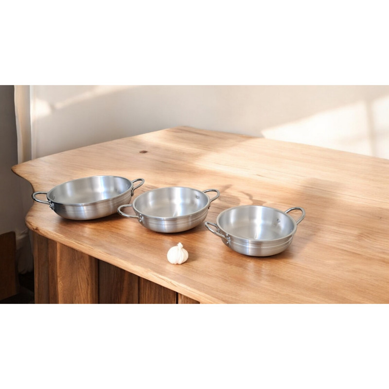 بدنهی آلومینیومی صیقلشده تابهها باعث انتقال یکنواخت حرارت میشود و عملکردی مطلوب در استفادهی روزانه ارائه میدهد. طراحی ساده و رنگ روشن بدنه، آنها را با سبکهای مختلف آشپزخانه هماهنگ میکند و جلوهای مینیمال و شیک به فضا میبخشد.